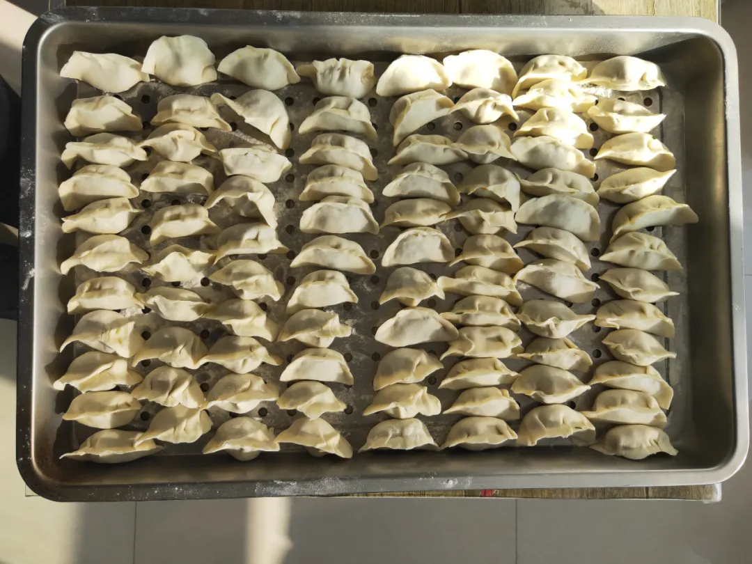 公司食堂提前準備好了三種餃子餡、備好包餃子的各種工具,迎接報名參與的員工的到來。活動得打了各部門領導的大力支持,紛紛派來代表參與活動,別看平時大家都是鍵盤手、鼠標手、包起餃子也不含糊,齊心協力、和面、搟皮、捏褶的,動作堪比專業的面點師。很快1000多個餃子整齊的排在餐盤上。